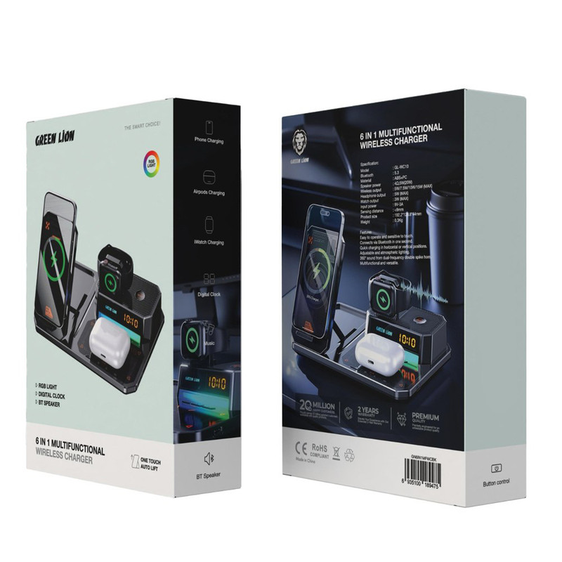شارژر بی سیم، اسپیکر و هولدر 6 کاره گوشی گرین لاین مدل 6IN1 Multifunctional یک محصول چندکاره و کاربردی برای افرادی است که به دنبال ترکیب چندین وسیله در یک دستگاه هستند. این محصول با قابلیتهای متنوع خود از جمله شارژ بی سیم، اسپیکر بلوتوثی، ساعت دیجیتال و هولدر گوشی، تجربهای راحت و کارآمد را برای کاربران فراهم میکند. طراحی هوشمند و کیفیت بالای این دستگاه، آن را به یک گزینه ایدهآل برای استفاده در منزل یا محل کار تبدیل کرده است.